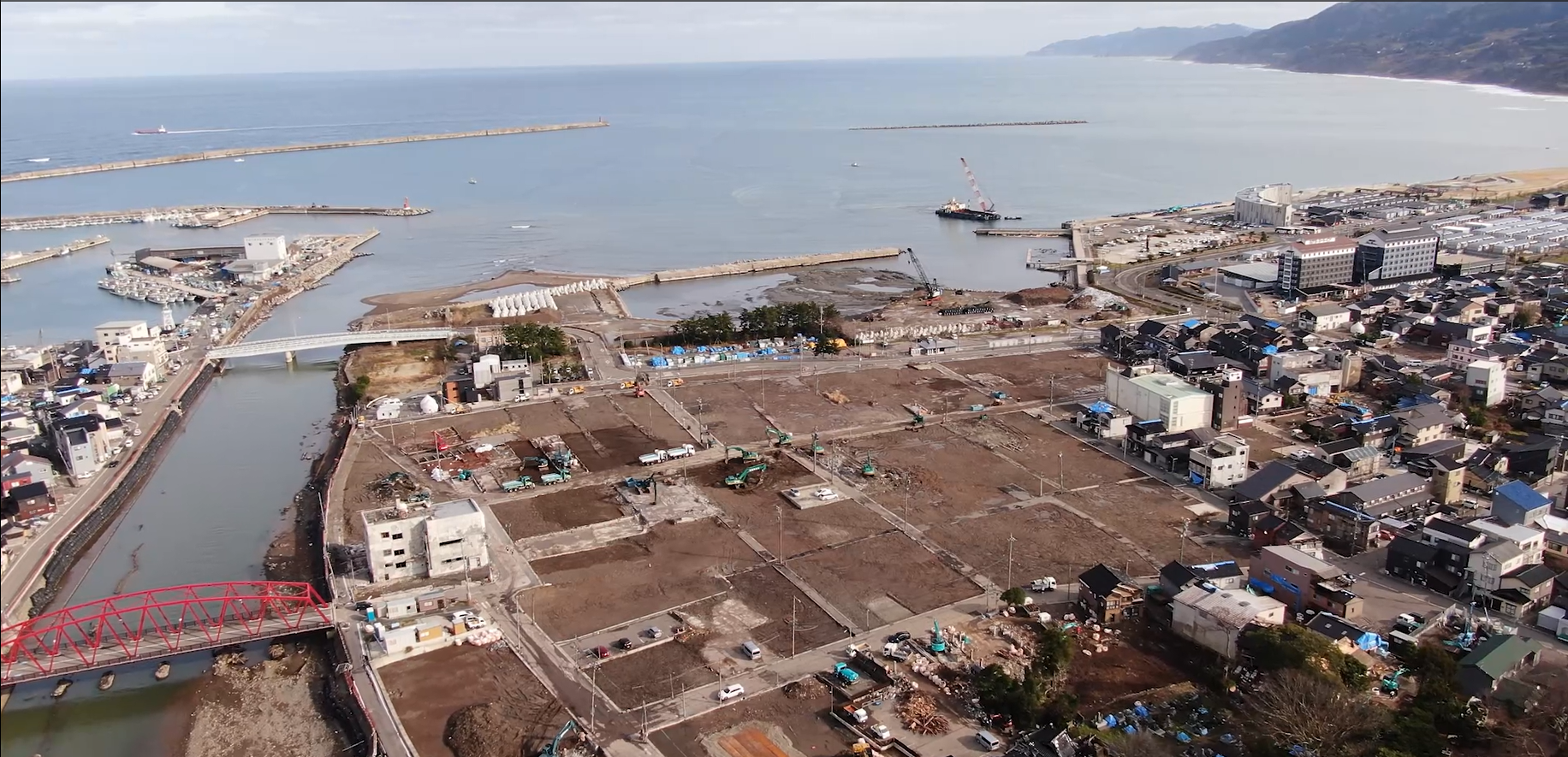 国土交通省によると、石川県の珠洲市と能登町、志賀町で計約190ヘクタールの津波浸水を確認。珠洲市の浸水深は約4メートルに達した。津波が襲い、火災も発生して大きな被害が出た能登町白丸地区では集団移転の検討が続く。