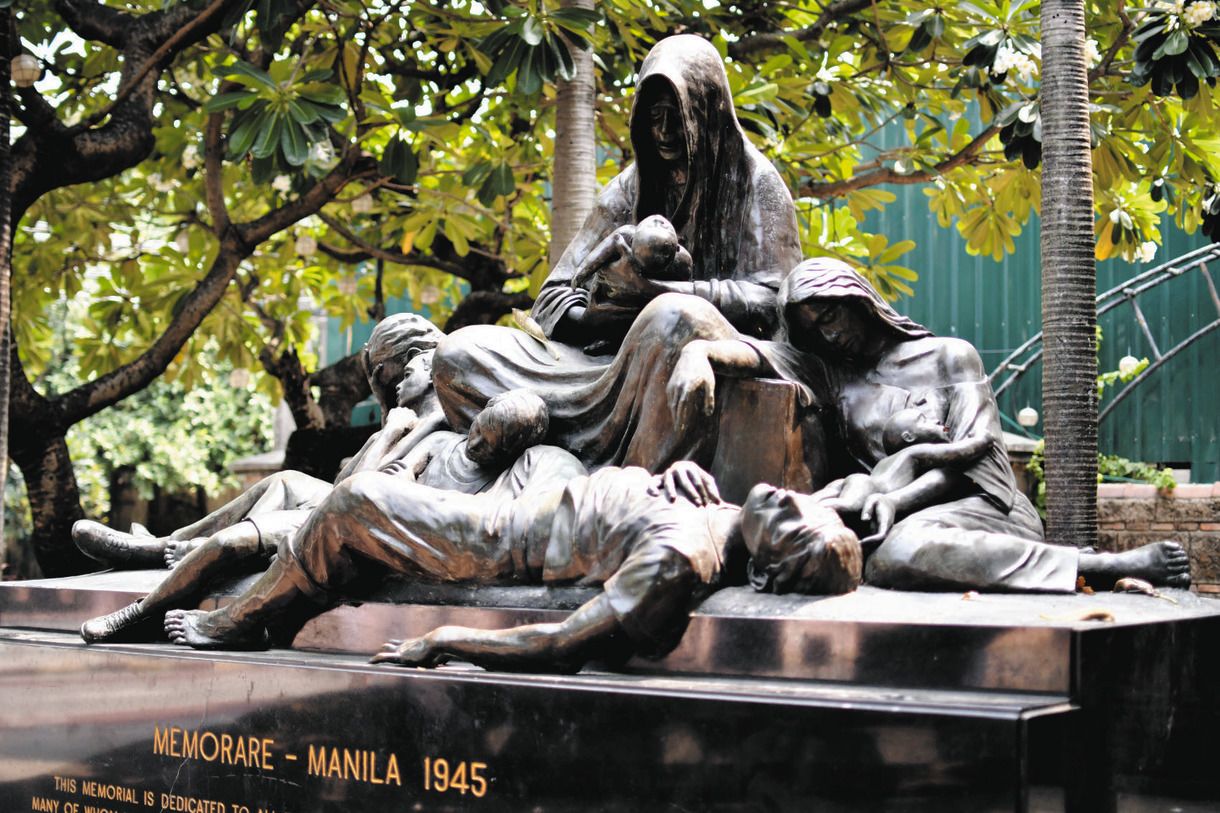 マニラ市街戦の悲劇を伝える慰霊碑=フィリピン・マニラで