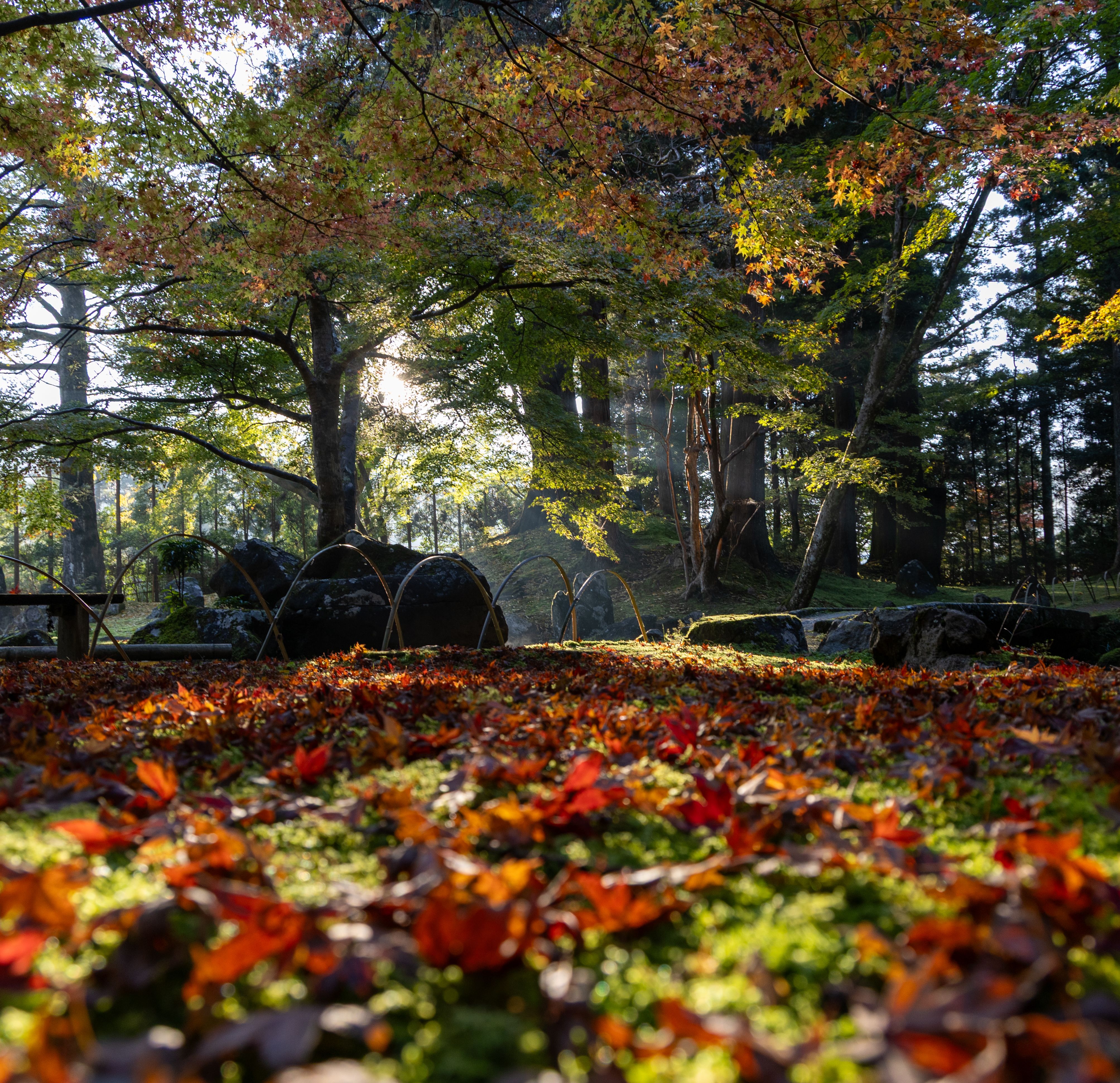 室町時代に造られた北畠氏館跡庭園は、枯山水と池庭で構成され、コケやモミジなどの自然と調和した美しさで知られる。室町幕府で管領を務めた細川高国の作とされ、戦国武将が手がけた素朴で力強い石組みが見どころ。「日本三大武将庭園」の一つで、国が名勝に指定した歴史的な名園だ。