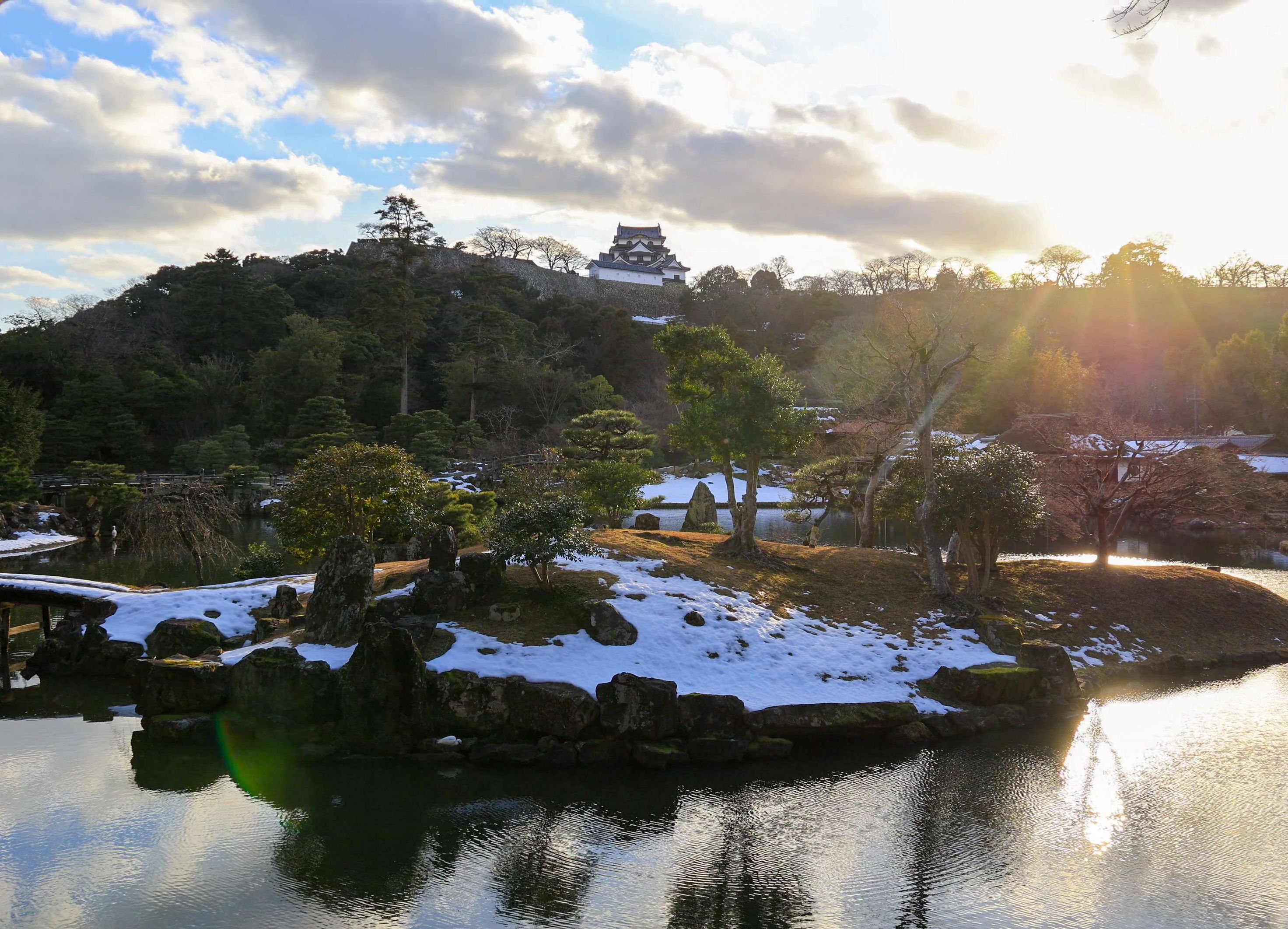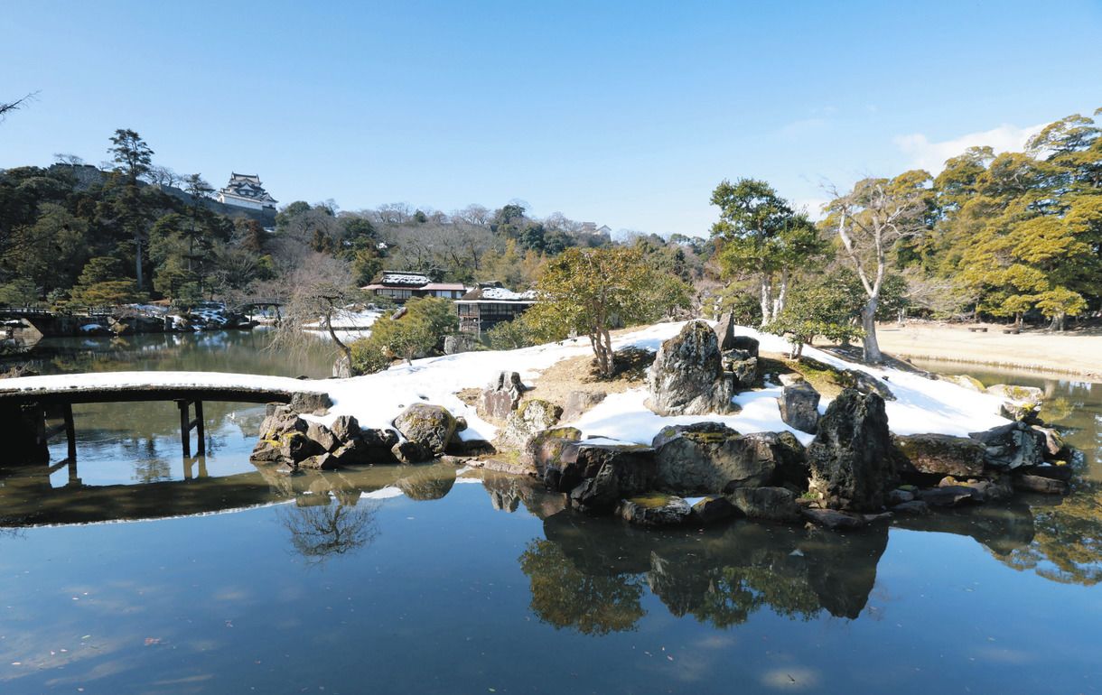 江戸時代を代表する大名庭園の一つ玄宮園(げんきゅうえん)は、国の名勝に指定されている。彦根城下に広がる大きな池の周りを散策する「池泉(ちせん)回遊式庭園」で、彦根藩4代藩主の井伊直興(なおおき)が1679年に完成させた。池のほとりを歩くと、変化に富んだ景色が現れ、訪れた人をもてなす仕掛けが施されている。
